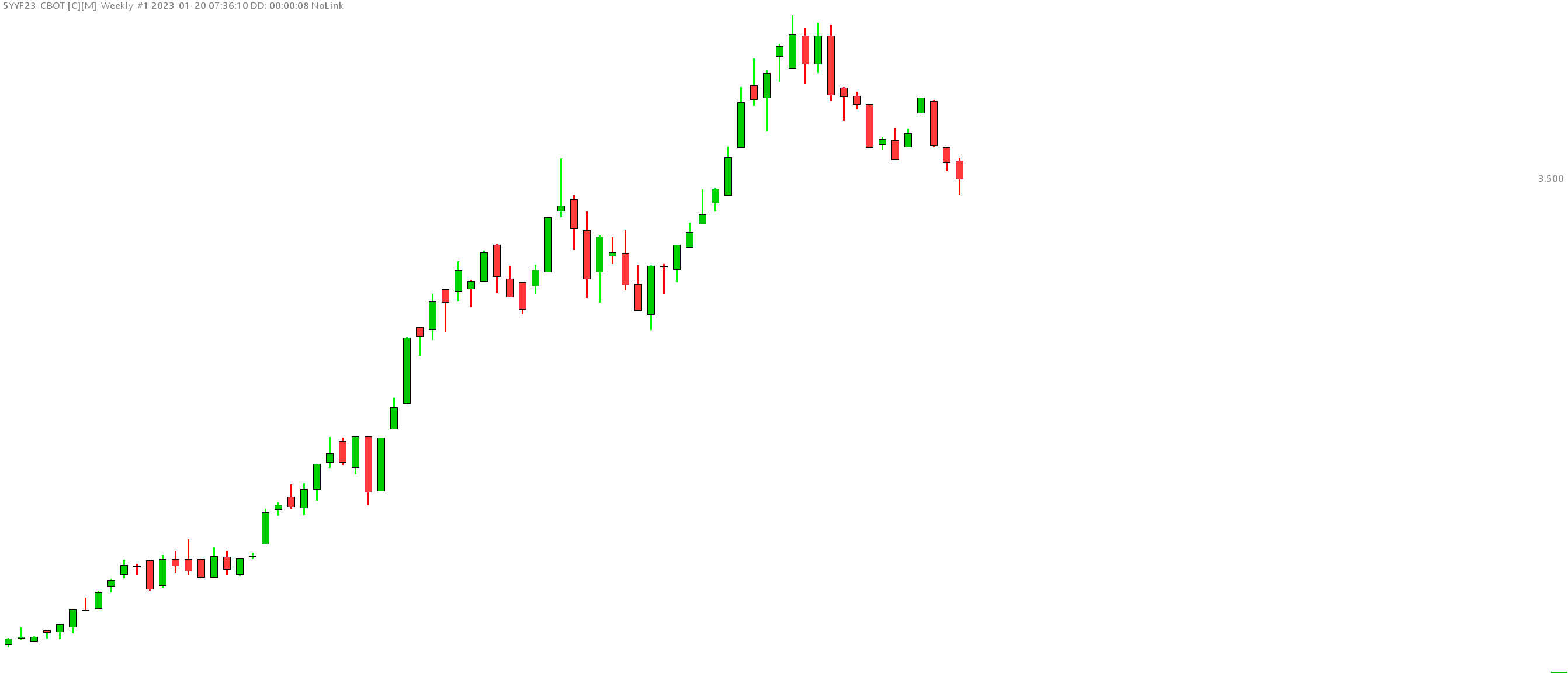 Thanks for your reply, I followed the procedure to the end and it showing about 6 candles more but that is it. Shows after process: Weekly Candles 13 Daily Candles 59 https://www.sierrachart.com/image.php?Image=1674236381502.png In settings/symbol / continuous contract I have selected Conitnunous futures contract - date rule rollover. What else can I do to be able to get at least a full chart worth of candles? The same process for done for F.US.Z5YYF23 + F.US.Z30YF23 does not help at all here, showing one candle only: https://www.sierrachart.com/image.php?Image=1674236782764.png https://www.sierrachart.com/image.php?Image=1674236799123.png Once again thank you. Regards, Date Time Of Last Edit: 2023-01-20 17:46:53