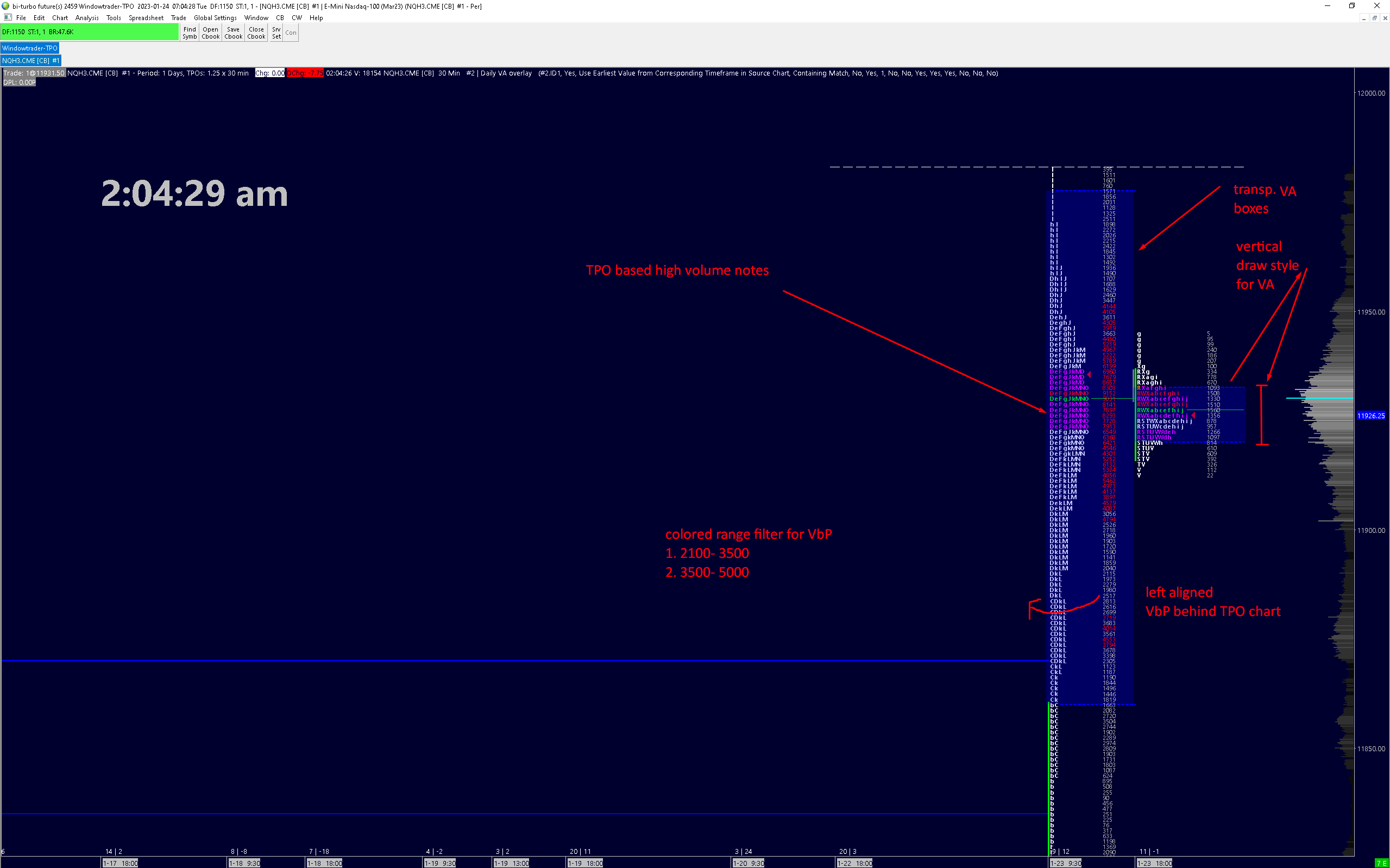 Trading is very visual. For me it is so important that I would like to renew my requests for improvement and suggestions for the TPO profile chart. (things i have already mentionedin the past) I would be very happy if this topic could be addressed (someday) 1. VA boxes for TPO chart (draw style) 2. TPO based high volume notes 3. left aligned VbP profile (in front of TPO profile) 4. Colored range filter for VbP study (example: 2100- 3500, 3501- 5000 contracts) 5. vertical right aligned lines for VA apart from these things, sierra chart is of course perfect. would be glad to receive a short reply and thank you for your attention. |