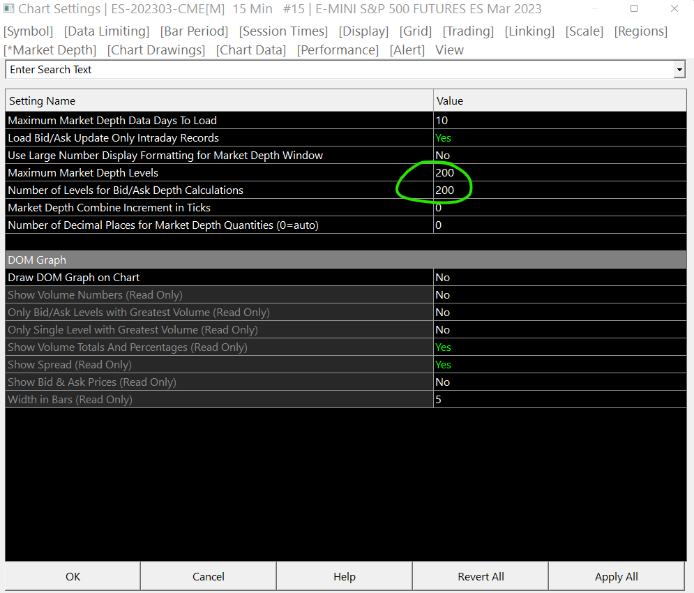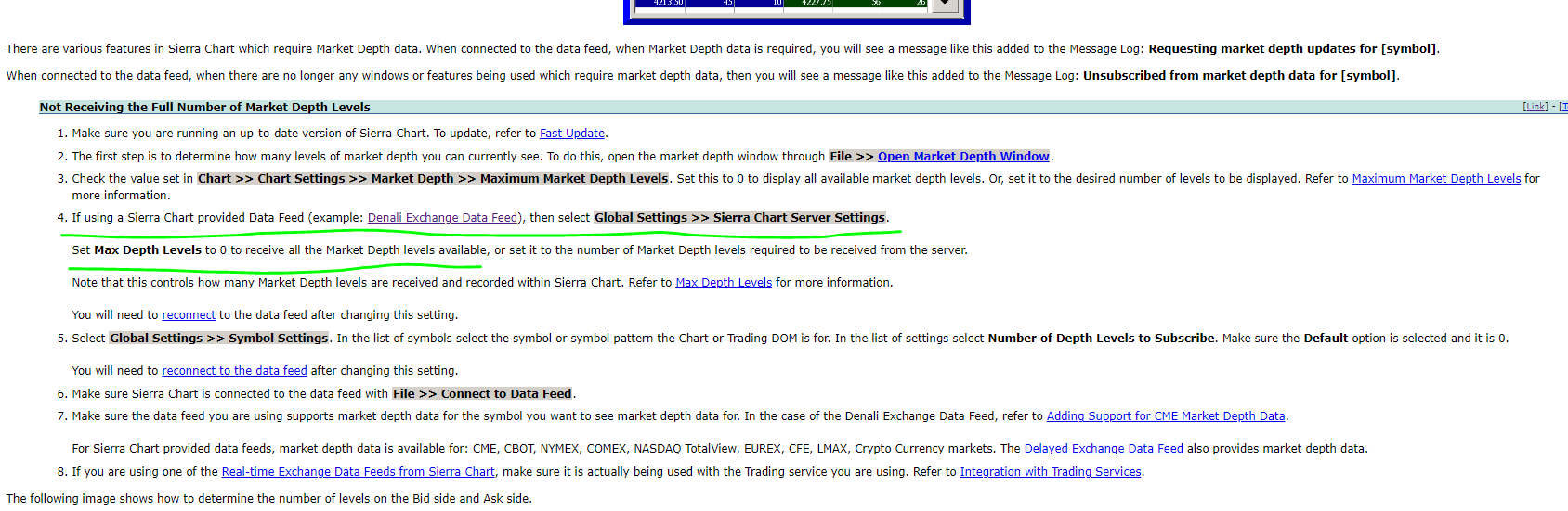 File Menu: Not Receiving the Full Number of Market Depth Levels see image attached... you gotta change the server settings Date Time Of Last Edit: 2023-03-28 08:40:42