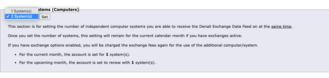 You are not allowed to have the Denali data to 3 different computers at the same time per the exchange rules.