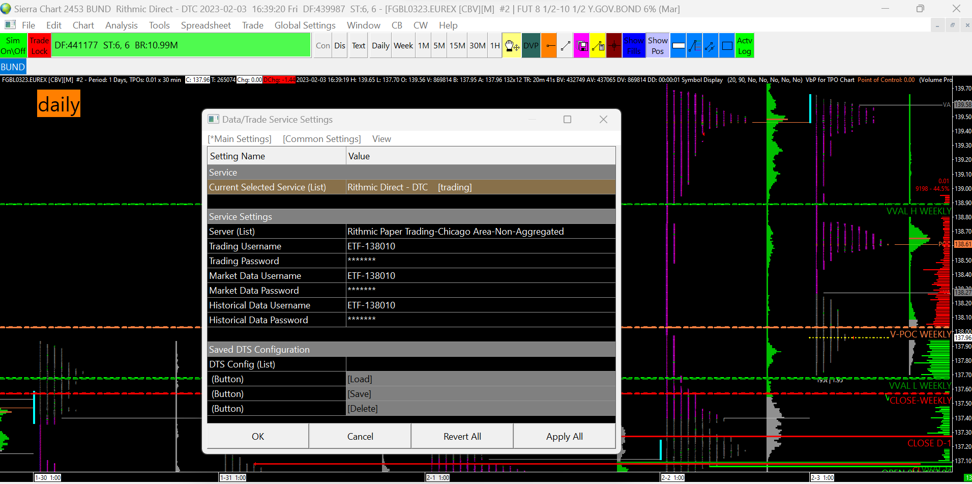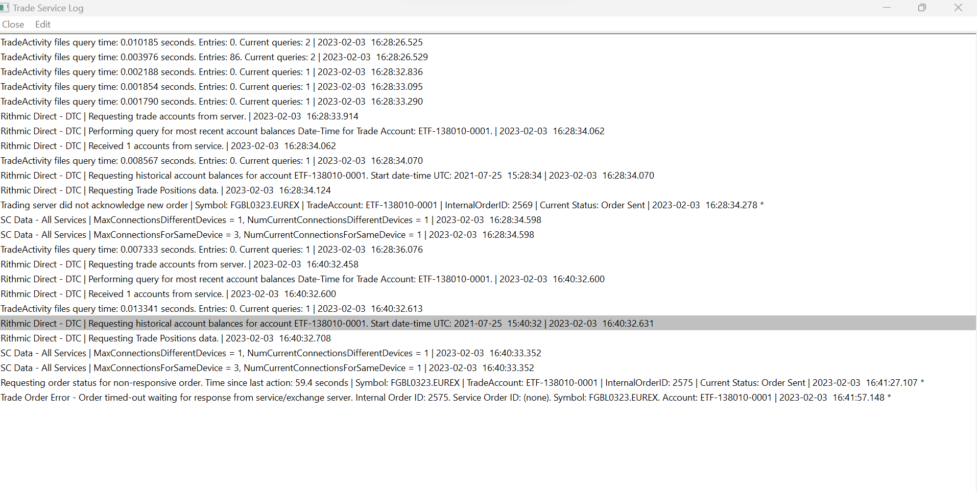 You are setup to get the EUREX data from us, which is required as we do not allow for data for EUREX from any other source. Therefore, you do have too many connections to the Denali Exchange Data Feed. Refer to the following: Denali Exchange Data Feed: Denali Exchange Data Feed on Two Computers Simultaneously For the most reliable, advanced, and zero cost futures order routing, use the Teton service: Sierra Chart Teton Futures Order Routing |