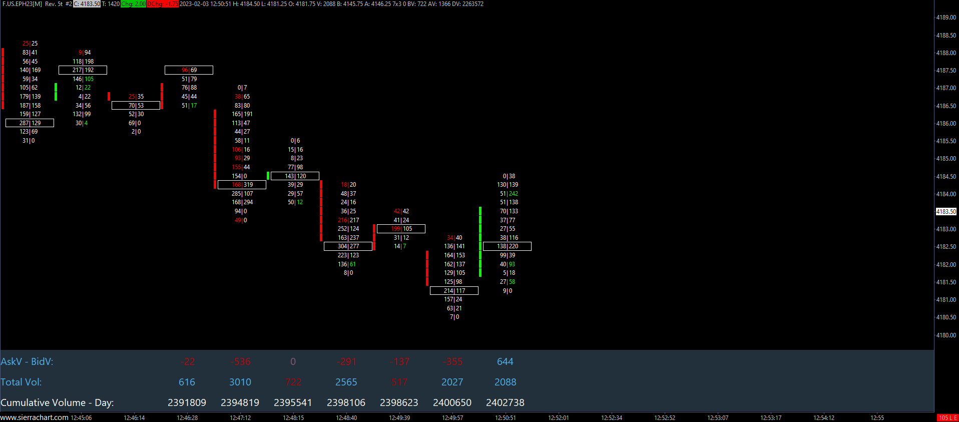 Hi -- hopefully this is an easy settings or scale fix. Got this footprint chart template, however a large portion of the right side of the screen does not show any data. When I zoom in on certain prints this gets even worse, only showing one print at a time. I remember having a similar issue with time charts but cannot figure out a fix. Thanks! https://www.sierrachart.com/image.php?Image=167551484993.png https://www.sierrachart.com/image.php?Image=167551489429.png |