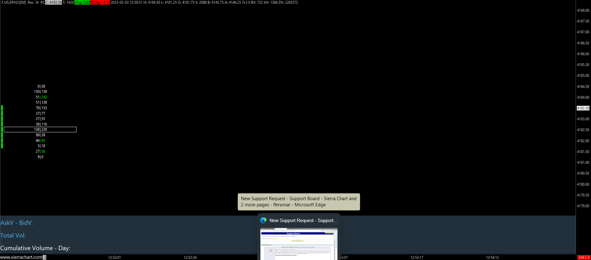 Sierra Chart Support - Engineering Level Your definitive source for support. Other responses are from users. Try to keep your questions brief and to the point. Be aware of support policy: https://www.sierrachart.com/index.php?l=PostingInformation.php#GeneralInformation For the most reliable, advanced, and zero cost futures order routing, use the Teton service: Sierra Chart Teton Futures Order Routing |