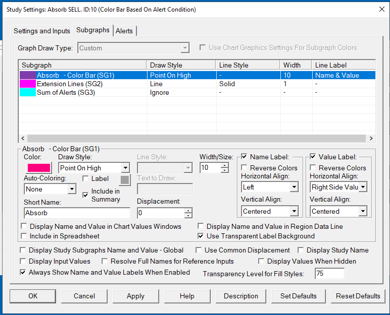 I kept messing with settings and can now display an alert so just need/hope to have other patterns other than circles and also would like alert to be BELOW or above the signal bar just in case there are patterns on multiple bars in a row. I noticed always show name and values when enabled and use transparent label background lets me show my short name but its to the LEFT of the signal hoping to put it above/below as well.