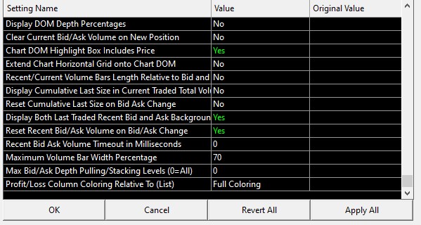 Hi, When using the pulling and stacking market depth function I am unable to see more than 1 level even though I set the global setting of levels in the DOM chart to 0. Even if I change the setting to only 10, I do not see 10 levels but only 1. See attached screenshots. Can you help please? Gerard |