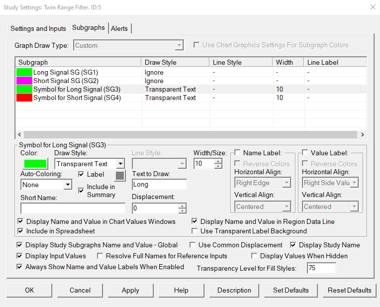 Try this: =IF(AND(LongCondition1,LongCondition2,LongCondition3),1,IF(AND(ShortCondition1,ShortCondition2,ShortCondition3),-1,ID1.SG1[-1])) where ID1 is the color bar study. This will make the confluent signal persistent until the opposite confluent signal. Then set the Auto-Coloring to Based On +/- |