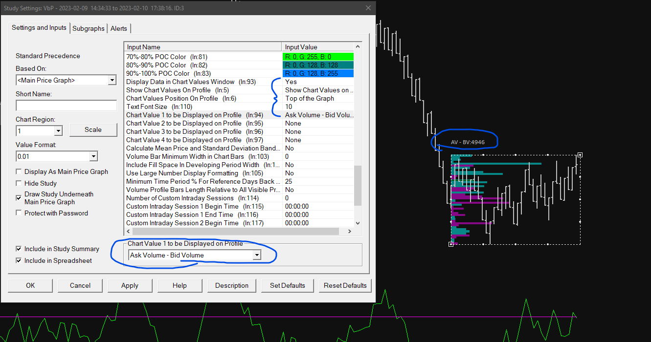 Not exactly, but you could configure the draw volume profile tool to show it using Show Chart Values on Profile. Volume By Price Study: Step by Step Instructions to Configure the Draw Volume Profile Tool Volume By Price Study: Show Chart Values On Profile Date Time Of Last Edit: 2023-02-11 15:41:11