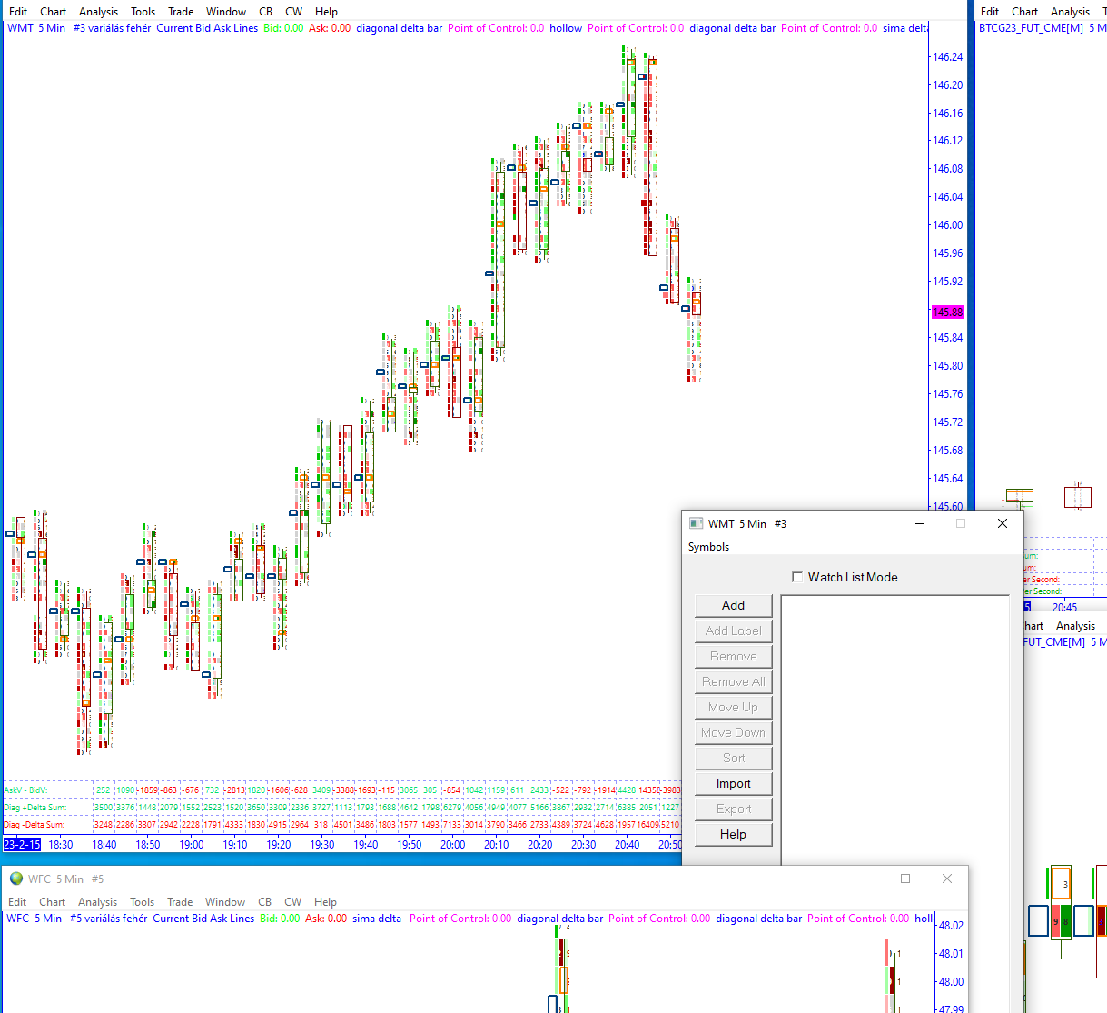 Dear Sierra! Sorry i was searching for the answer on quite a bit. I would like to have beside my futures list a longer list of nasdaq stocks 60-70 from which i can open intraday chart to chechk the footprint out quickly. What solutions do you reccomend other than memorize all the names? Or is that the quickest if i scan the higher timeframe chart on diffenet platform? thanks in advance |