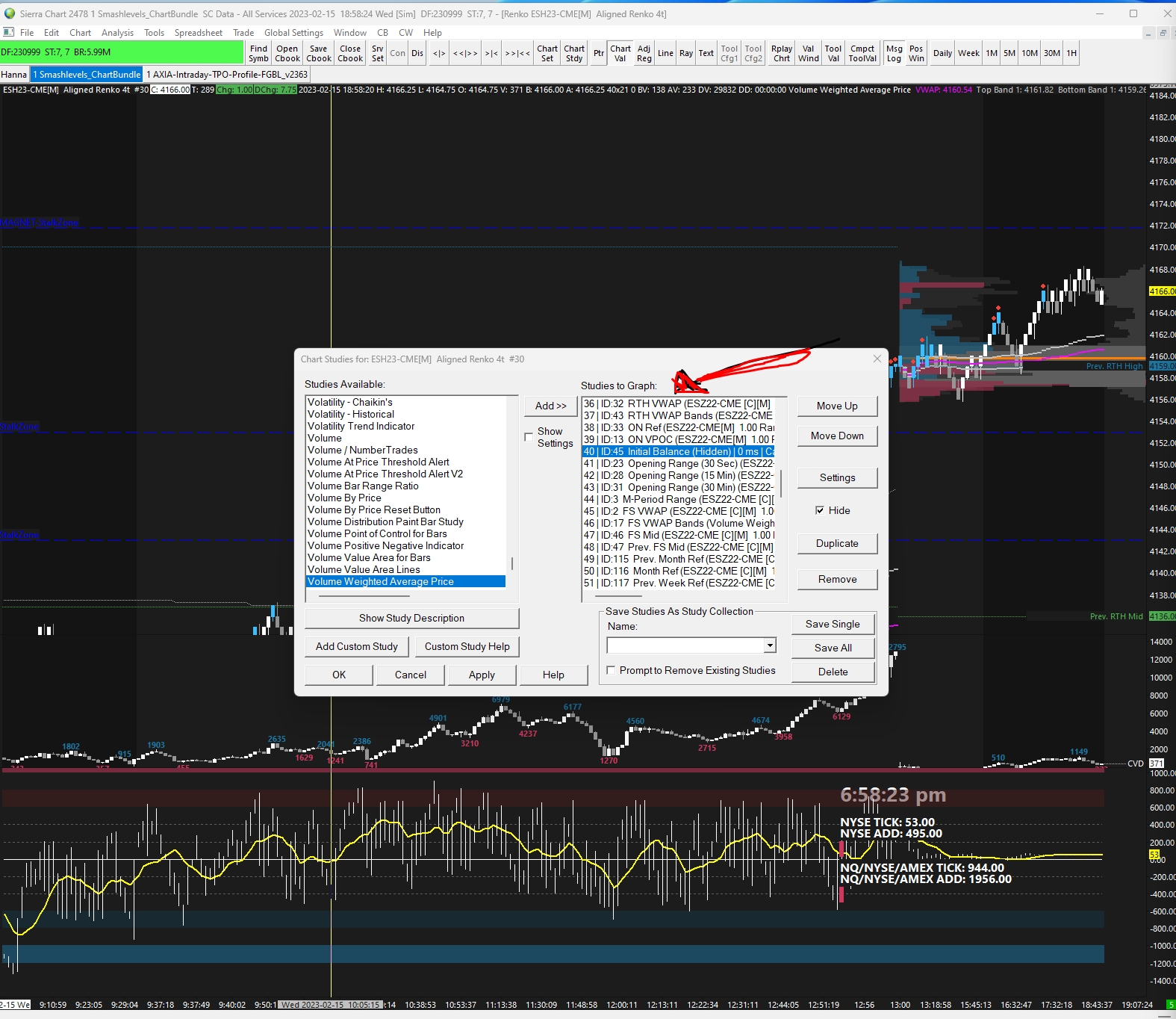 Hi, I just chased a new pre-built chart from someone. When I start using it, I realize the studies that come with the chart do not work. When I check, I realize the instrument that these studies are based on are ESZ22 but that is the one future contract. Currently we use ESH23. I can't change the instrument on the study. Please see the attached screenshot. Please help. |