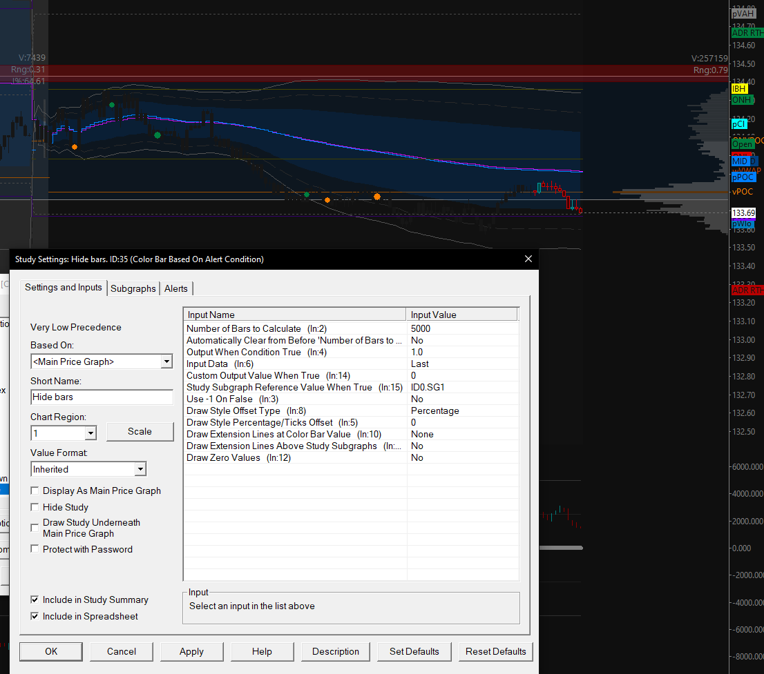 Just enable the option on the Heikin-Ashi study for Display as Main Price Graph. This will then remove the display of the original bars and only show the Heikin-Ashi bars. Refer to the following: Chart Studies: Settings and Inputs Tab >> Display As Main Price Graph For the most reliable, advanced, and zero cost futures order routing, use the Teton service: Sierra Chart Teton Futures Order Routing |
