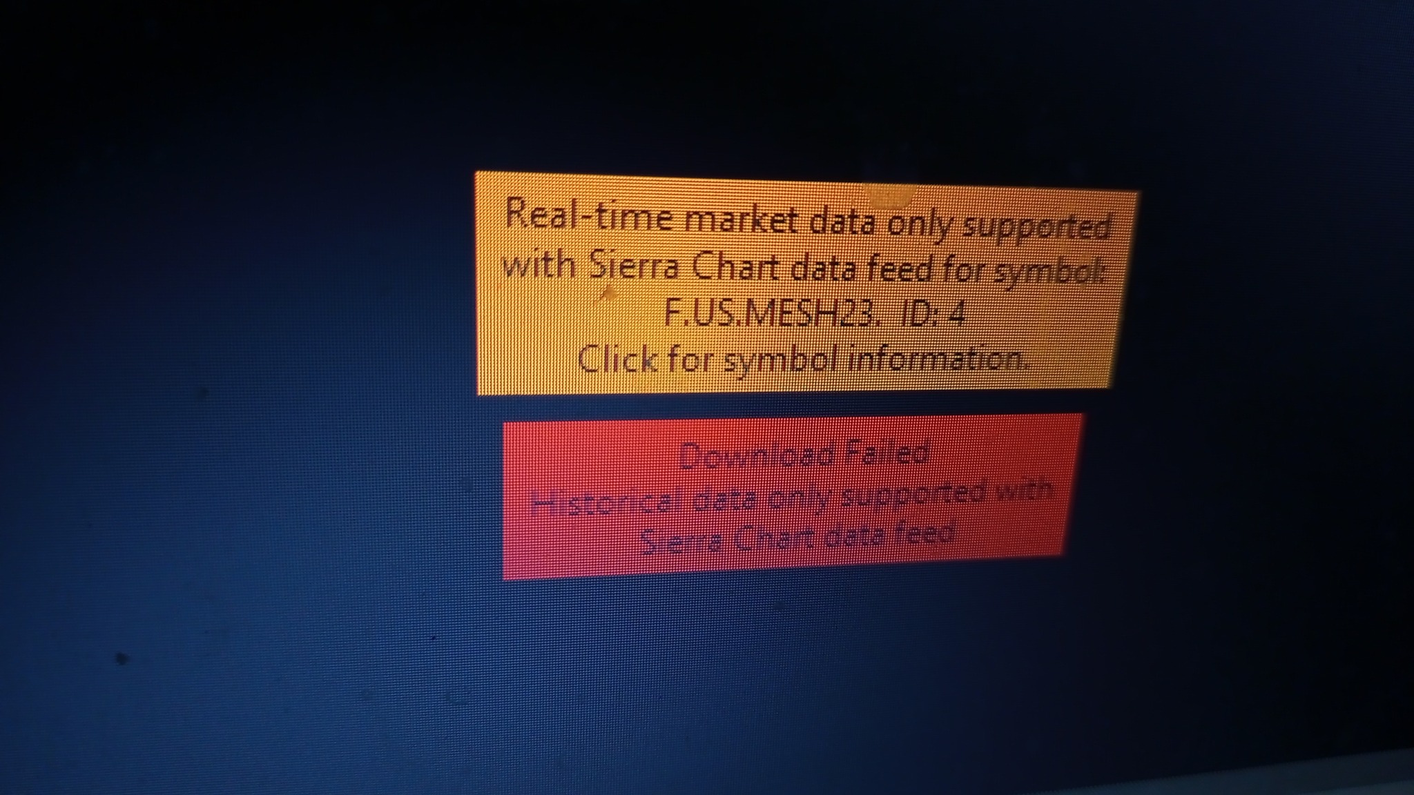 hice lo que me dijeron pero ahora me sale este mensaje. Como puedo lograr conectarme a la red CQG y recibir datos para micro E mini SP 500 en tiempo real para poder hacer trading? Gracias |