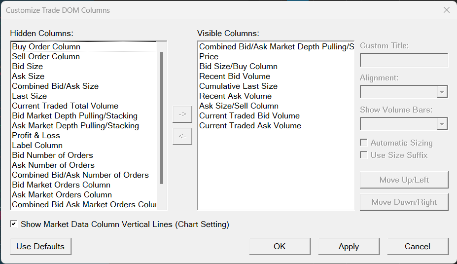 Dear support team, Would it be possible to add a "Current Traded Volume Delta" in addition to the "Current Traded Total Volume" that is only available? The difference (delta) between Current Traded Bid Volume and Current Traded Ask Volume is quite a powerful information and I am sure many traders will appreciate it. Best wishes, Billy |