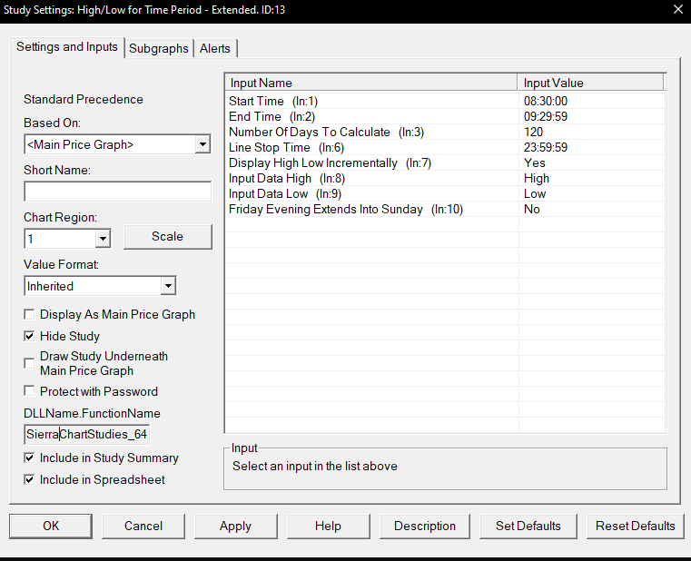 We realized that we had completely forgotten about the Initial Balance study. This should do what you want rather than the other items that I had mentioned. Refer to the following: Initial Balance For the most reliable, advanced, and zero cost futures order routing, use the Teton service: Sierra Chart Teton Futures Order Routing |