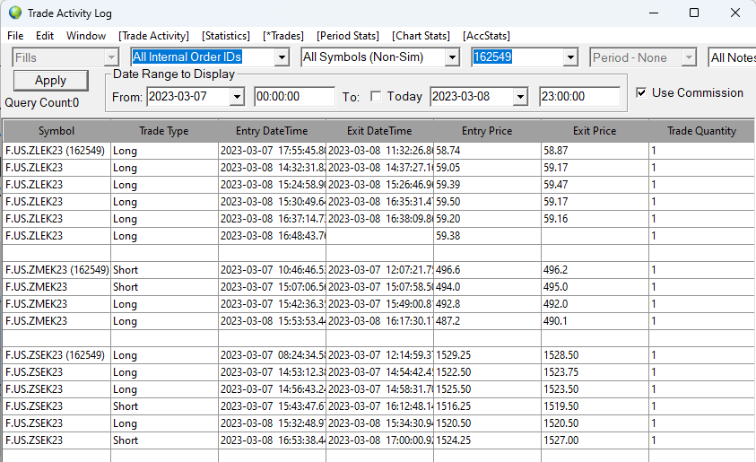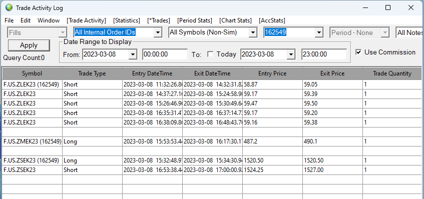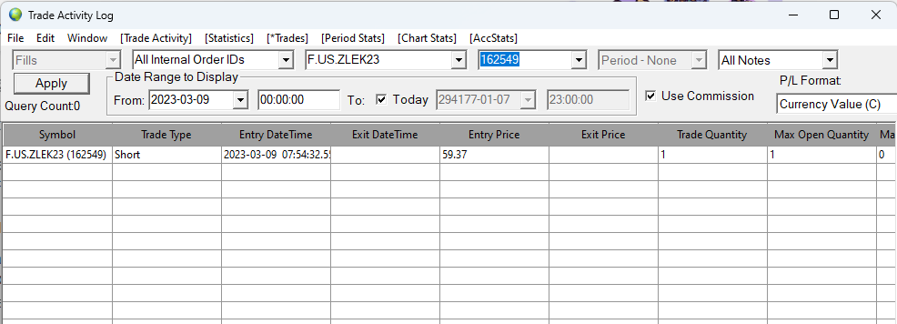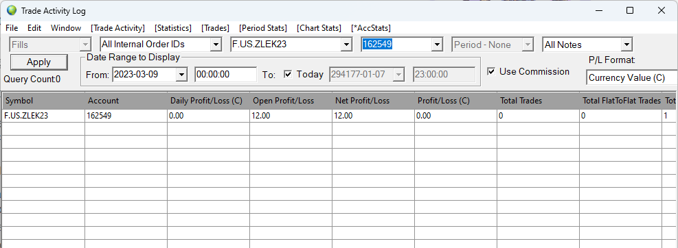 Unless you understand, how the Trade Activity Log tabs work and configure them properly and make sure you have no missing order fills, they will provide erroneous information! You cannot rely upon them without a full understanding of how they work. For an understanding of how they work, refer to: Trade Activity Log: Understanding and Setting the Start Date-Time for a Trades List Be sure to watch the video in that section. And refer to: Trade Activity Log: Understanding Daily Trade Statistics Reset Time Sierra Chart Support - Engineering Level Your definitive source for support. Other responses are from users. Try to keep your questions brief and to the point. Be aware of support policy: https://www.sierrachart.com/index.php?l=PostingInformation.php#GeneralInformation For the most reliable, advanced, and zero cost futures order routing, use the Teton service: Sierra Chart Teton Futures Order Routing Date Time Of Last Edit: 2023-03-10 09:36:27