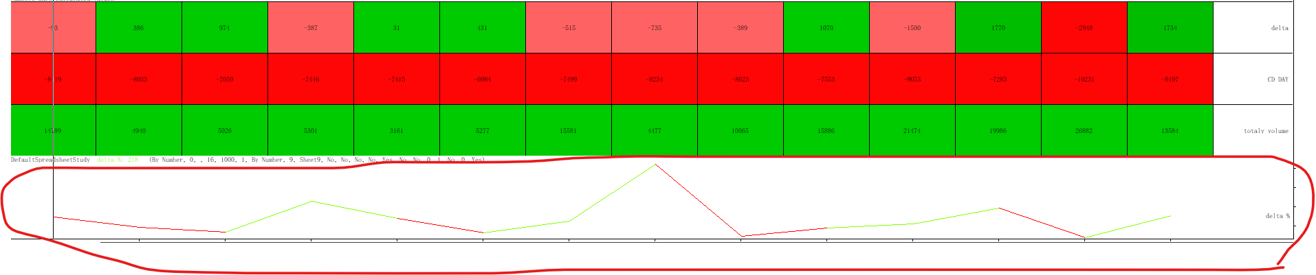 hi, i am not sure is sierra chat have feature like that comparing current bar delta valve to previous bar delta value as shown on picture. basically is (current bar delta valve - previous bar delta valve)/ |previous bar delta valve|*100%, also how can i show my subgraph value on FP bar like shown in picture as well. thanks |