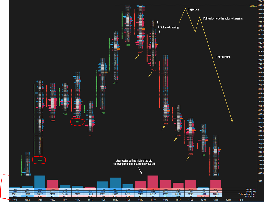 Hello, I am trying to mimic my footprint chart (30 min FP picture) to the attached Smash FP Chart picture. I'd like the bottom numbers to display on mine such as the Delta Bar, Delta Day, Total Volume Bar and Finish Bar, along with the red/blue blocks that is displayed on top of those numbers. Also, I'd like to have the Delta by Bar displayed at the bottom of each footprint bar. Can someone please help me with all of this. |