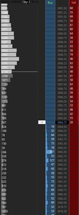 Greetings, my current DOM chart looks like this: https://www.sierrachart.com/image.php?Image=1679567361577.png I would like to add 2 more columns, indicating the Ask/Bid volume at each price. Looks like the screenshot attached (see blue arrows). How can I set this up please? Thanks a lot, Klaus |