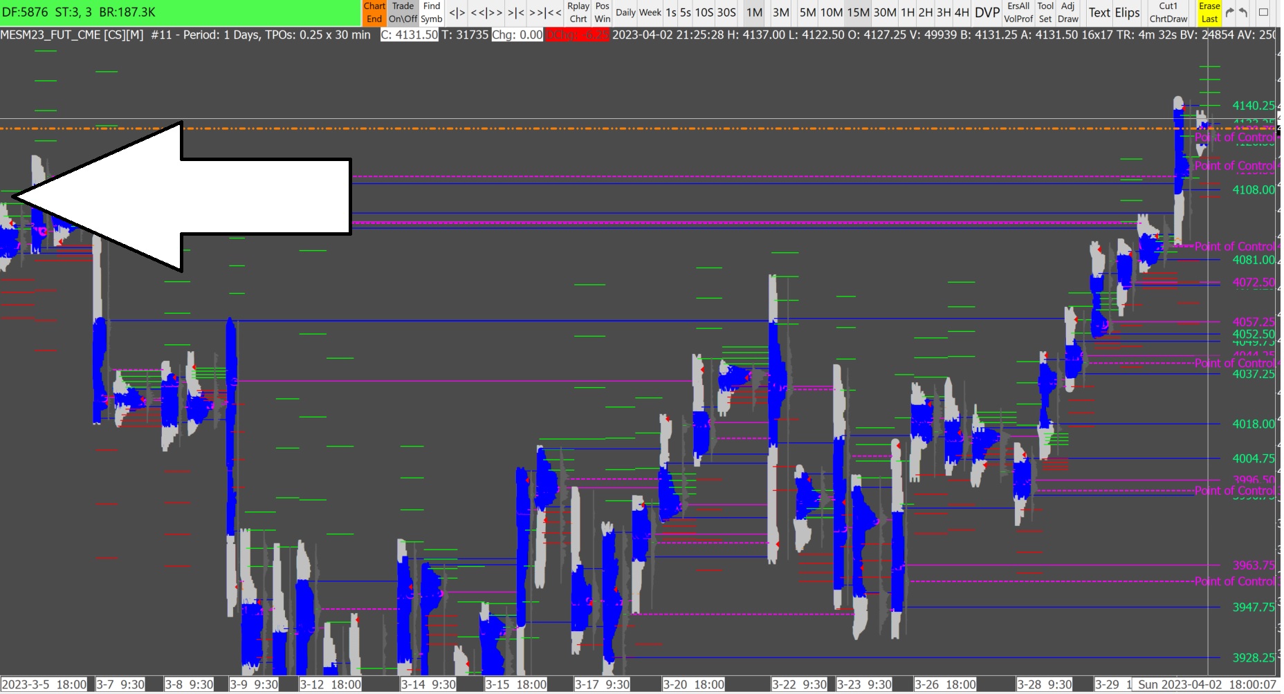 Remove the TPO and first make sure you have the Bar data that covers the time period for which you want the TPO charts. If you are not getting data far enough back in time, then you may need to use the Continuous Futures chart. The specific setup instructions for this are at the following link: Continuous Futures Contract Charts: Step-By-Step Instructions We are not going to rewrite what already exists in our documentation. If it is not a Continuous Contract issue, then refer to the following for how to load more data: Historical Intraday Data (Missing Data / Download Errors / Viewing More Data): Downloading/Viewing More Historical Intraday Data For the most reliable, advanced, and zero cost futures order routing, use the Teton service: Sierra Chart Teton Futures Order Routing |