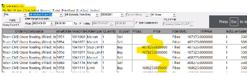 Hi, When I export my trades into a txt file via the trade activity log, the prices for my executions show incorrectly. So for example it seems like it's being multiplied by 100? Why is this? For example for ES trade. If entry price is 4101.0, the file shows it as 410,100. Is this only for futures? Because this is the first time i saw this happen when exporting. Thank You |