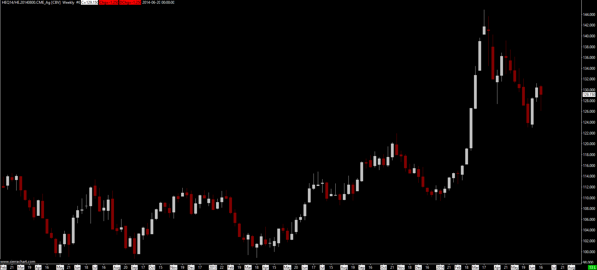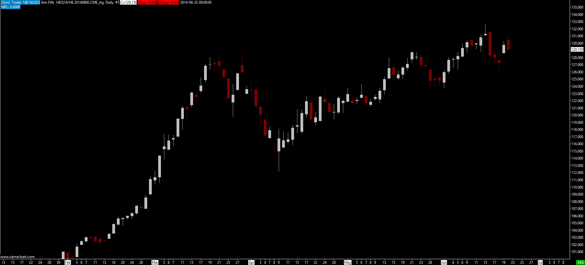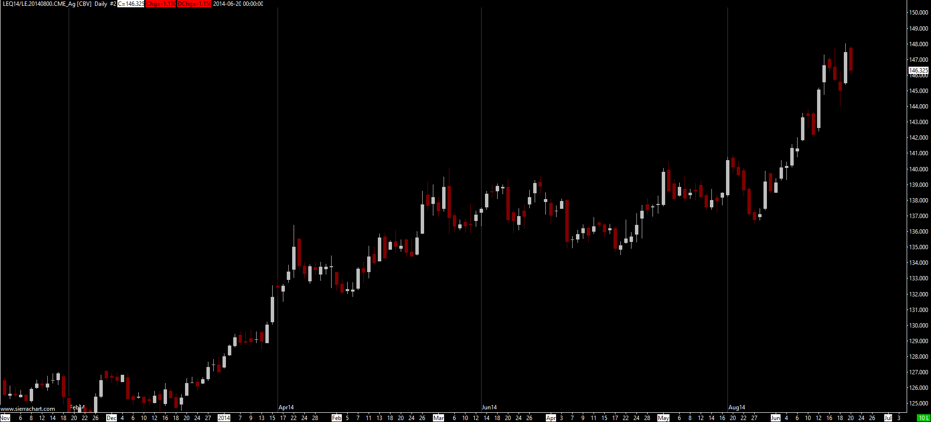 Here is the HE daily and weekly showing the price difference and an LE daily showing the rollover dates. HE is the only one I'm having problems with regarding the price difference and not being able to display rollover dates.