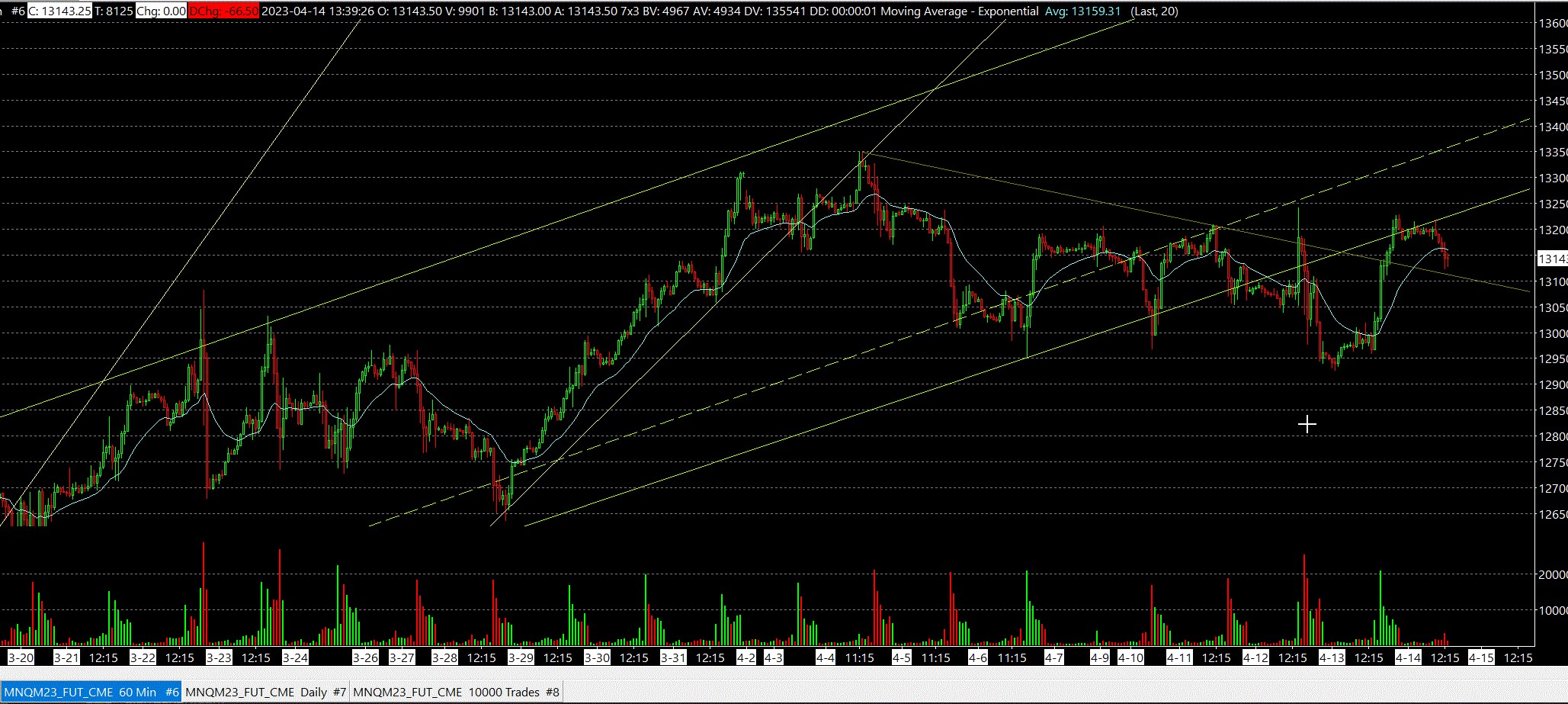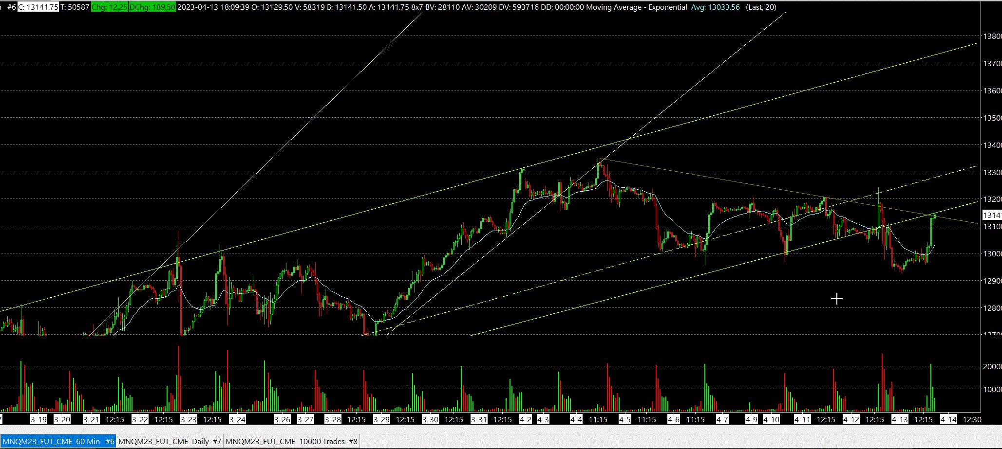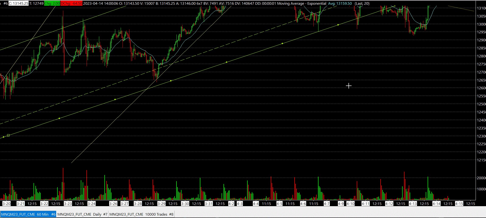 Hello, this post is meant to help the users and maybe the Sierra Chart team. I want to point out an issue I've found today which I didn't read explicitly written in this webpage: Lines/Rays or Other Chart Drawings Move After Drawing Them So this problem occurred to me in a H1 chart(1 hour chart). I saw a big difference between yesterday and today in the placement of the green trend line. See picture 1 and 2(sorry for the upload but I couldn't do otherwise). Basically what I think happened is that at least the 1st anchor point got automatically moved forward since it belonged to a day no longer loaded by the chart because it had "days to load" set to 30. Unfortunately in pic number 3 you can't see the 1st anchor point but only the 2nd since I've made a bad screenshot at the time(and now I've changed the chart settings loading 60 days) but I can assure you that both the 1st and the 2nd anchor points were anchored "nowhere", touching nothing at all, and it's impossible I could have done that. The fact is I've drawn those rays at the beginning of the contract, so that is more than 30 days ago. I double checked and I saw that the trend began on 13th of March(maybe 1 or 2 day earlier). I hope this will be of help. |
