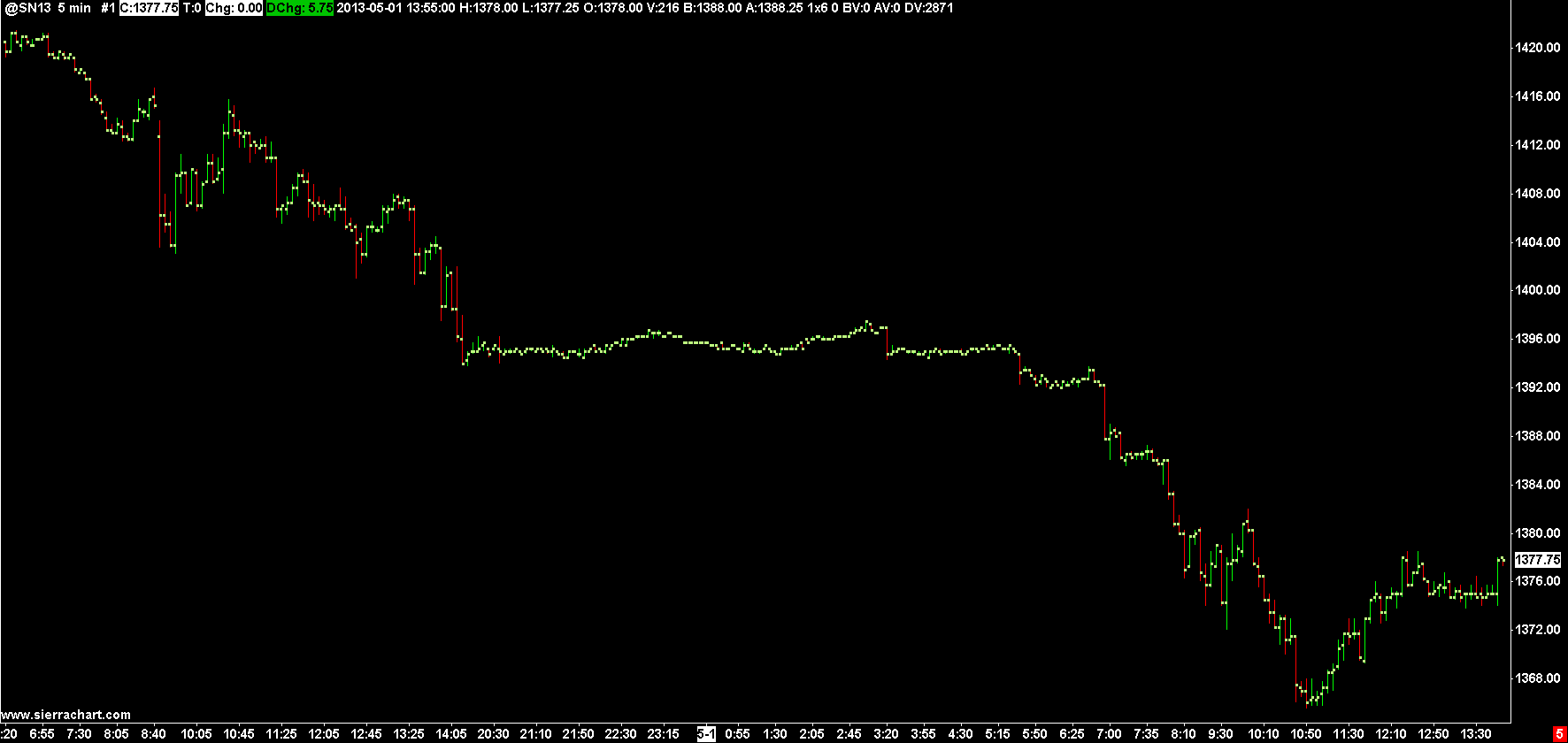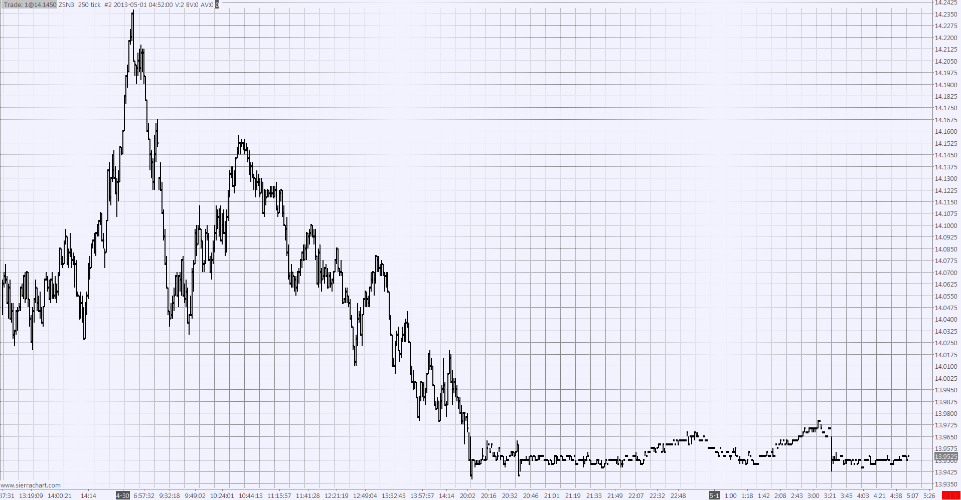 Here's what the chart looks like. The data in the chart was refreshed towards the end of the RTH session, April 30th. http://www.sierrachart.com/image.php?l=1367946769693.png |
