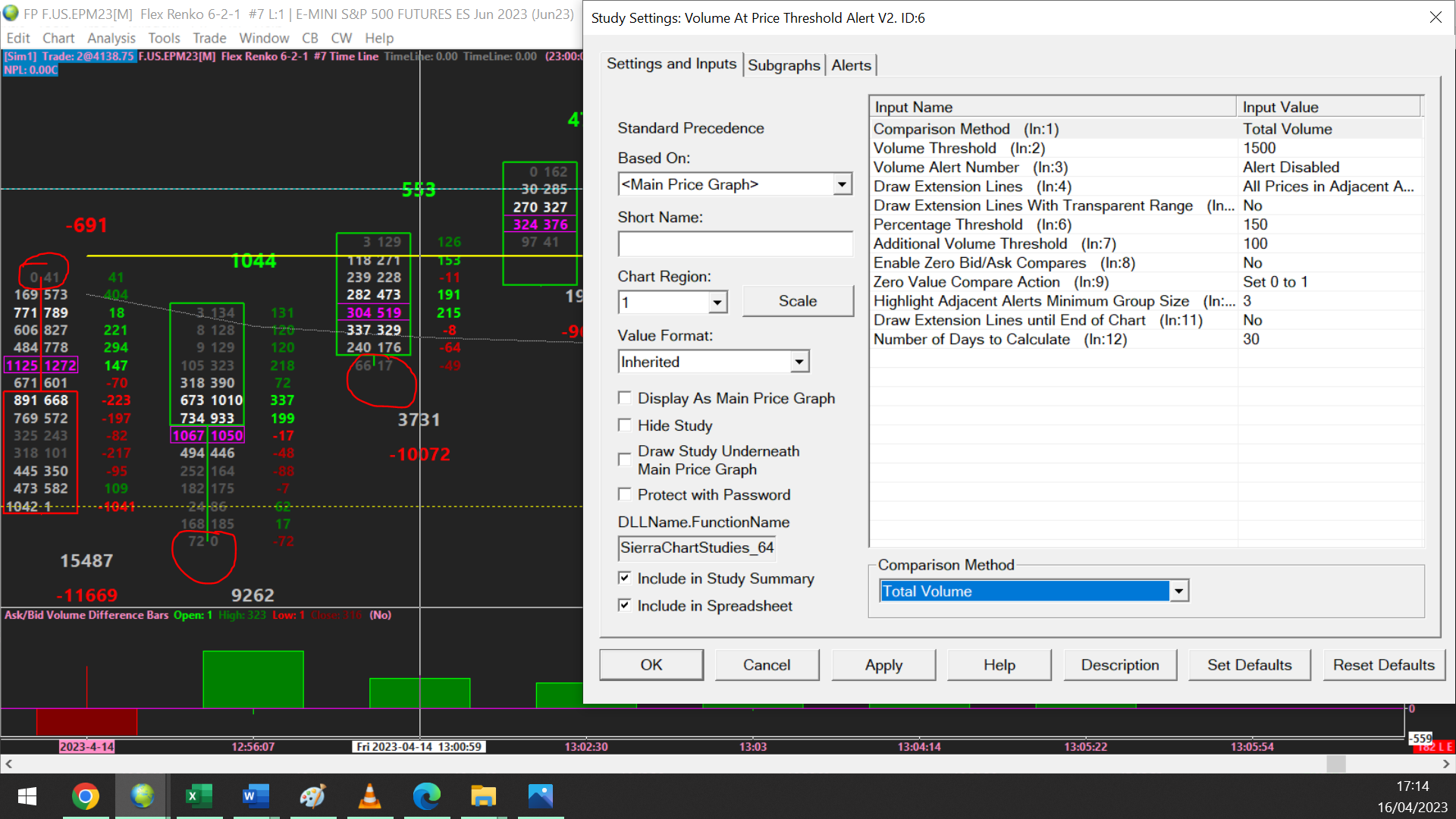 Hello, What I am trying to achieve is the inverse of the "volume at price threshold v2" study, i.e. I want to highlight a price level on the chart where the Total Volume is LOWER than the threshold rather than above it (or within a specified range). The equivalent on a volume profile would be the extension of a "valley" instead of a "peak". In the example picture there is a renko footprint... I want to be able to highlight/extend a level where the volume is e.g. 100 or less (even more helpful if I could define a set range). I have circled levels where the total volume at price was <100, I would like to highlight/extend these on a renko chart. Many thanks |