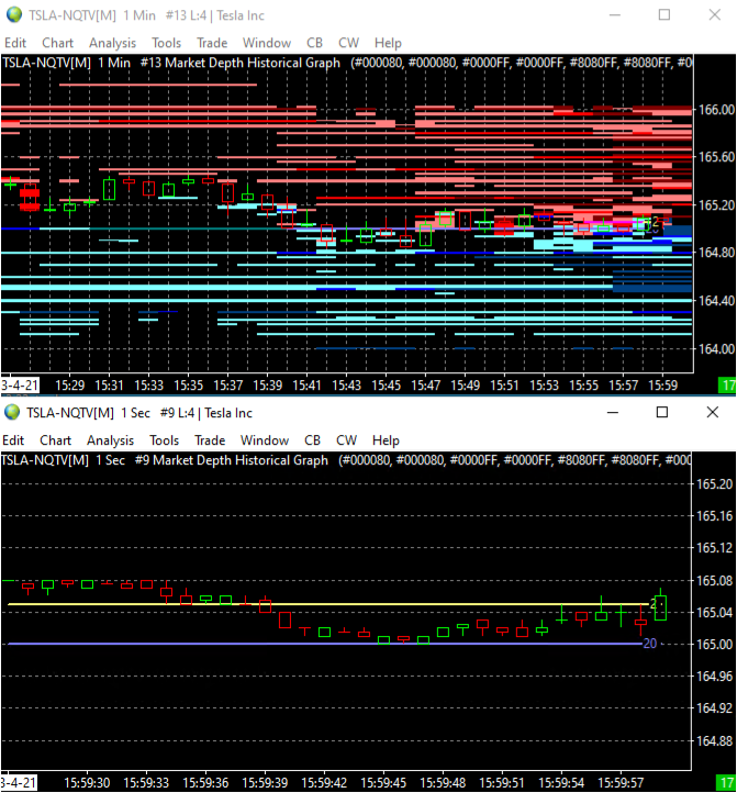 hello, I'm trying to see the yesterday day lines but it doesnt show it to me (in real time i can see it perfectly). on the chart of 1 min it show it to me, but on the 1 second graph it doesnt show it (i duplicated the same graph with the same study(1 min bar) and just change the bar period to 1 sec) what can i do to see those lines of market depth in 1 sec chart? |