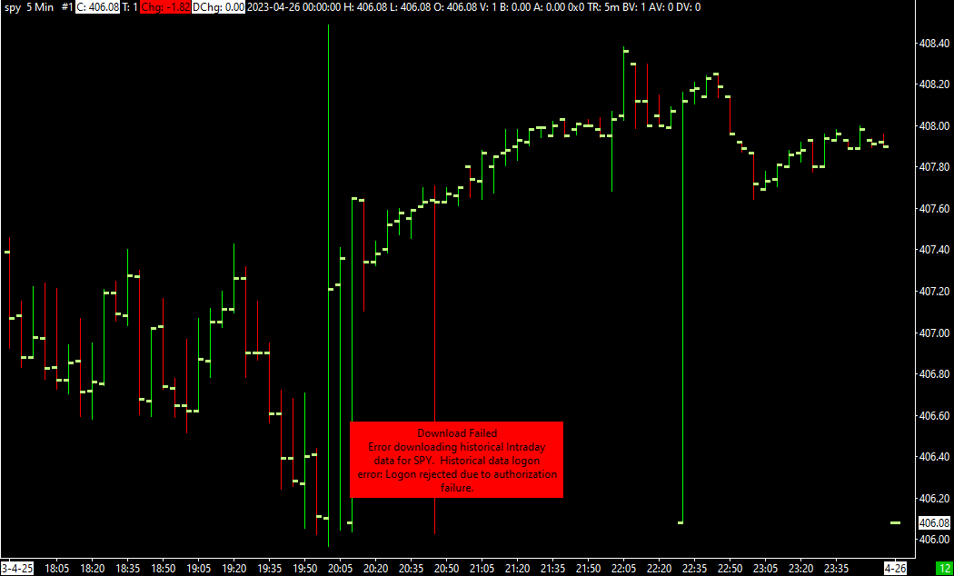 My account is valid through 10/13/2023. However, I cannot download intraday data today, and a message popped up that reads: "logon rejected due to authorization failure". I don't know why it happened (it never happened for the past five years). Please help me solve the problem ASAP. Thanks.