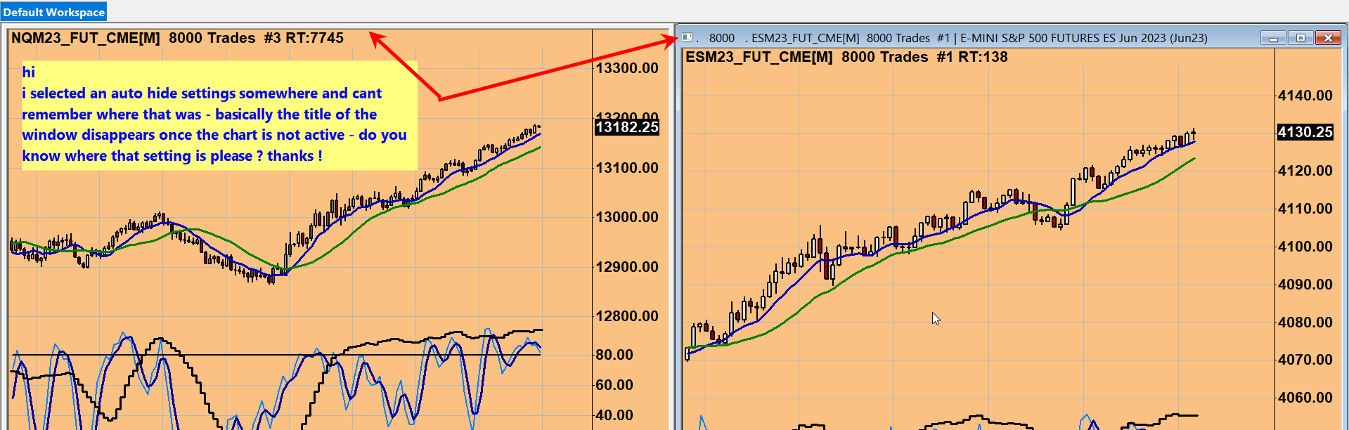 Chart >> Show Title Bar Refer to the following: Chart Menu: Show Title Bar (Chart menu) For the most reliable, advanced, and zero cost futures order routing, use the Teton service: Sierra Chart Teton Futures Order Routing |