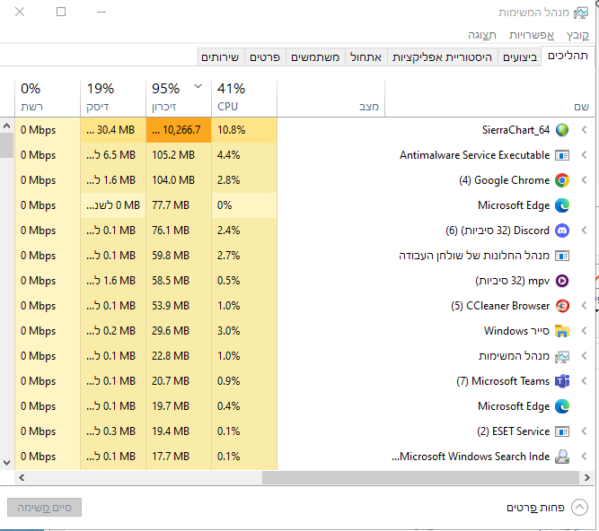 Hi there, Something happened to my programs Sierra Chart & Teton: I can not open them as well, the RAM its like out of memory. I didn't download something else. I didn't change any settings of the programs. My computer is getting crazy while the program is running and I don't know what to do. Picture attached below. Thank you. |