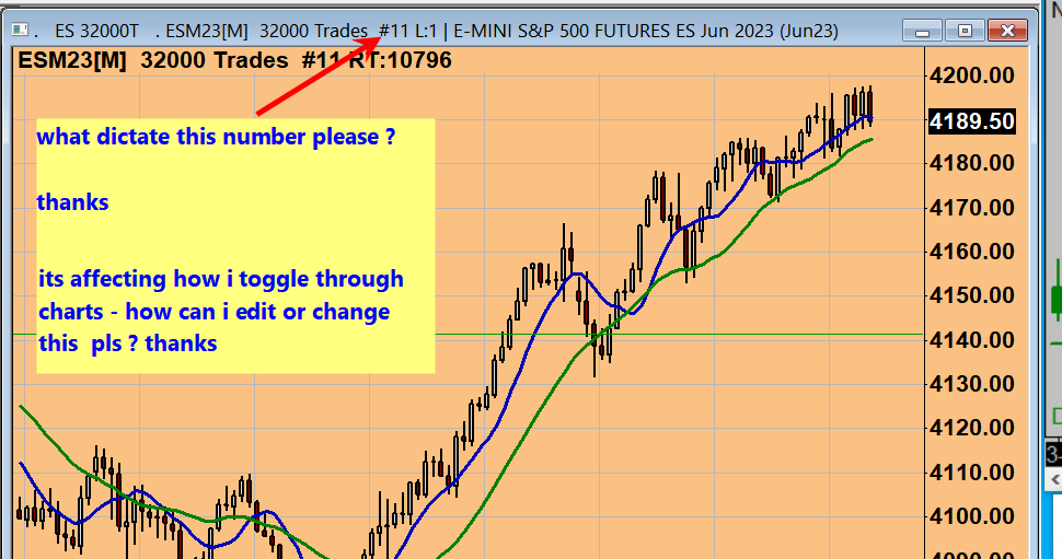 That is the Chart Number. You can not change the Chart Number. The only option would be to duplicate the chart to a new one and the next available chart number will be used. You can organize the order of the charts by selecting Window >> Windows and Chartbooks. Refer to the following: Window, CB and CW Menus: Windows and Chartbooks (Window) For the most reliable, advanced, and zero cost futures order routing, use the Teton service: Sierra Chart Teton Futures Order Routing |