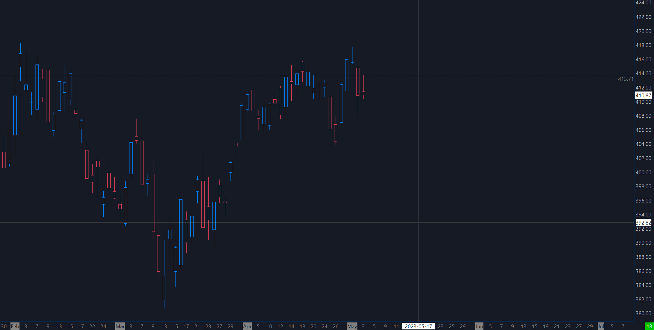 SC is showing me a high of 413.71, while TV and NYSE (https://www.nyse.com/quote/ARCX:SPY) are giving me a high of 412.65 for today, 03May2023 (see https://www.sierrachart.com/image.php?Image=1683128315483.png). I tried reloading/recalculating and deleting all data and downloading.