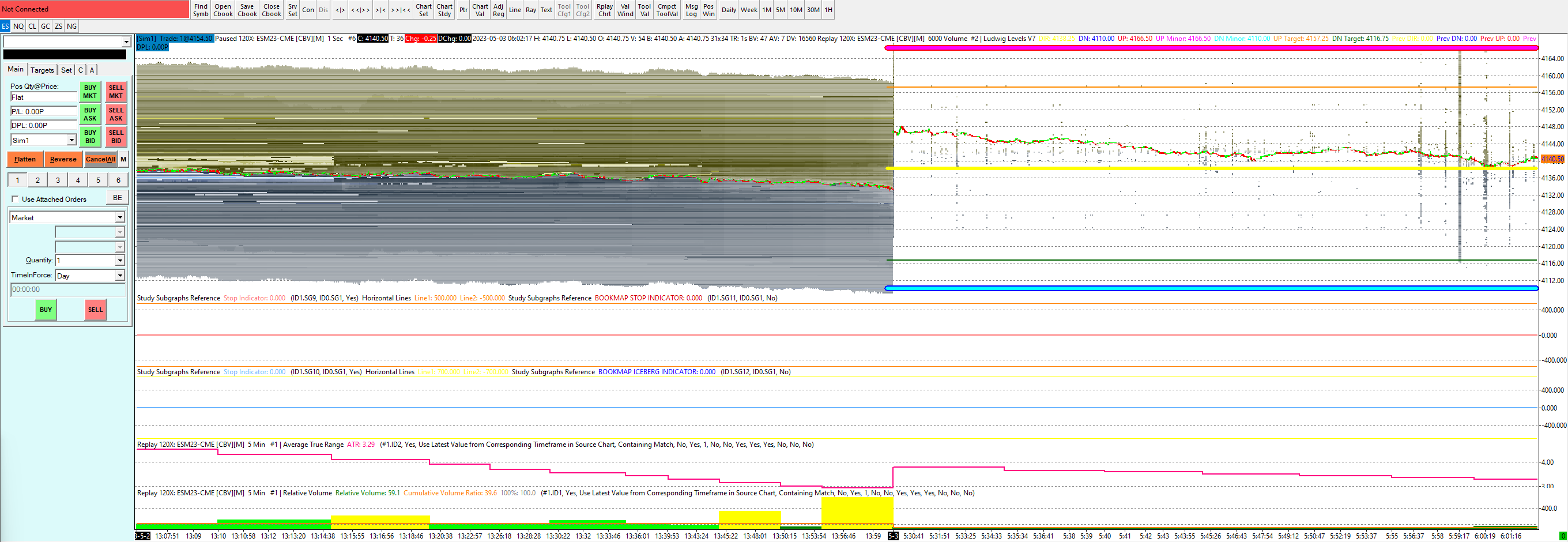 We did a replay at 480 times with market depth data, and the market depth data displayed by the Market Depth Historical Graph was 100% identical for replayed data, as compared to the market depth data loaded when using Chart >> Reload and Recalculate. We do not know what is happening in your case. Maybe there is some out of memory condition occurring or an issue caused by a custom study. Run Sierra Chart in Safe Mode: Sierra Chart - Software Login Instructions: Using Safe Mode What is the Replay Mode set to: Replaying Charts: Replay Mode Sierra Chart Support - Engineering Level Your definitive source for support. Other responses are from users. Try to keep your questions brief and to the point. Be aware of support policy: https://www.sierrachart.com/index.php?l=PostingInformation.php#GeneralInformation For the most reliable, advanced, and zero cost futures order routing, use the Teton service: Sierra Chart Teton Futures Order Routing Date Time Of Last Edit: 2023-05-09 10:54:34