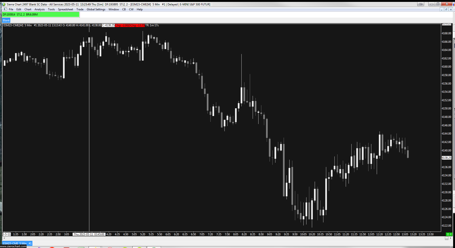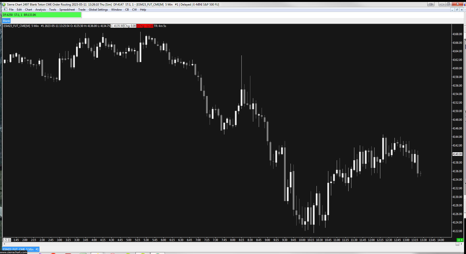 There is nothing showing in your log of any issues. The one thing we want to point out is that this particular instrument is not traded heavily, so it's possible that what you are seeing is simply due to the lack of trading at that time. Please open a chart for ESM23_FUT_CME and let us know if you see delayed data with this particular instrument. For the most reliable, advanced, and zero cost futures order routing, use the Teton service: Sierra Chart Teton Futures Order Routing |