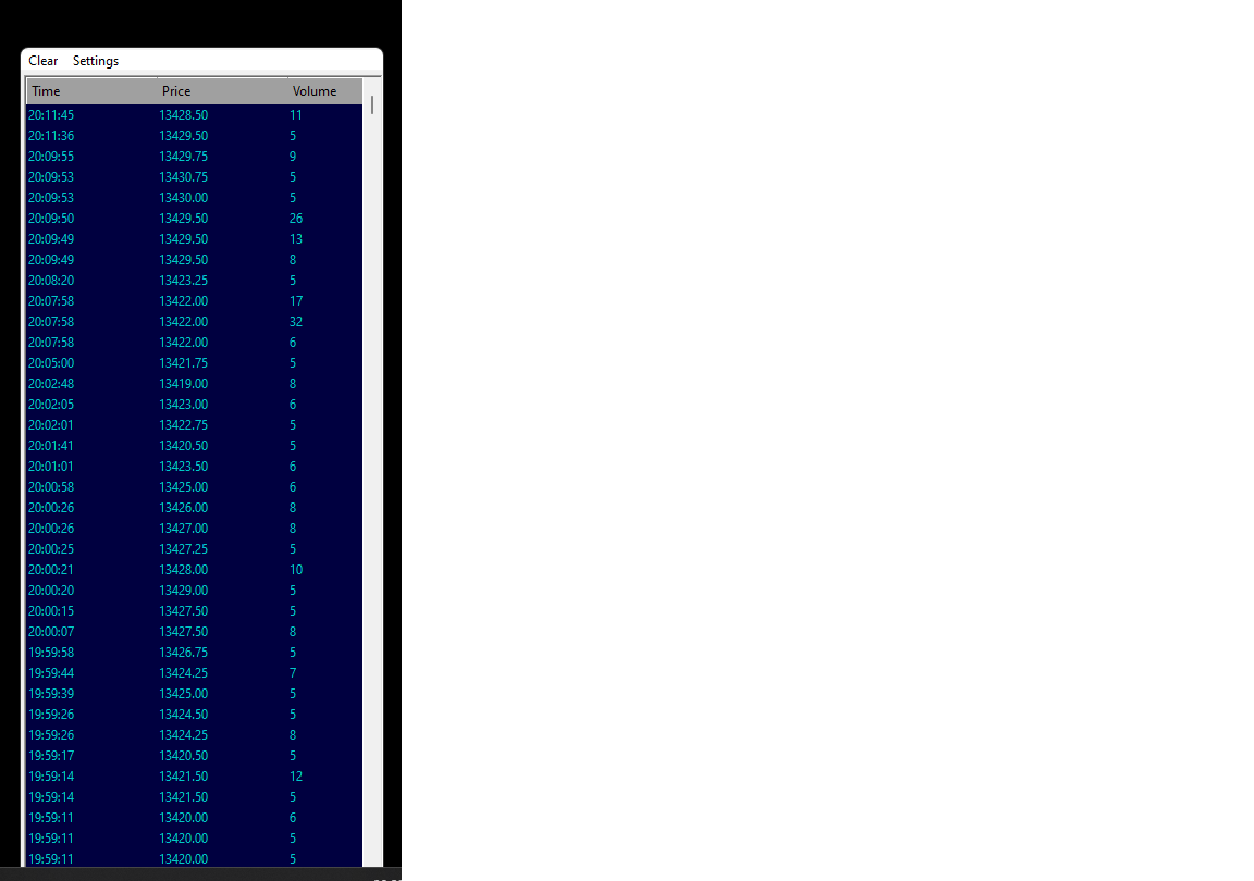 This is definitely not true. The Time and Sales window works properly in this version and the current version. We just tested it. The issue you are experiencing has to do with the operating system. It is a Windows operating system issue in your case. We cannot provide further help with this. Sierra Chart Support - Engineering Level Your definitive source for support. Other responses are from users. Try to keep your questions brief and to the point. Be aware of support policy: https://www.sierrachart.com/index.php?l=PostingInformation.php#GeneralInformation For the most reliable, advanced, and zero cost futures order routing, use the Teton service: Sierra Chart Teton Futures Order Routing |