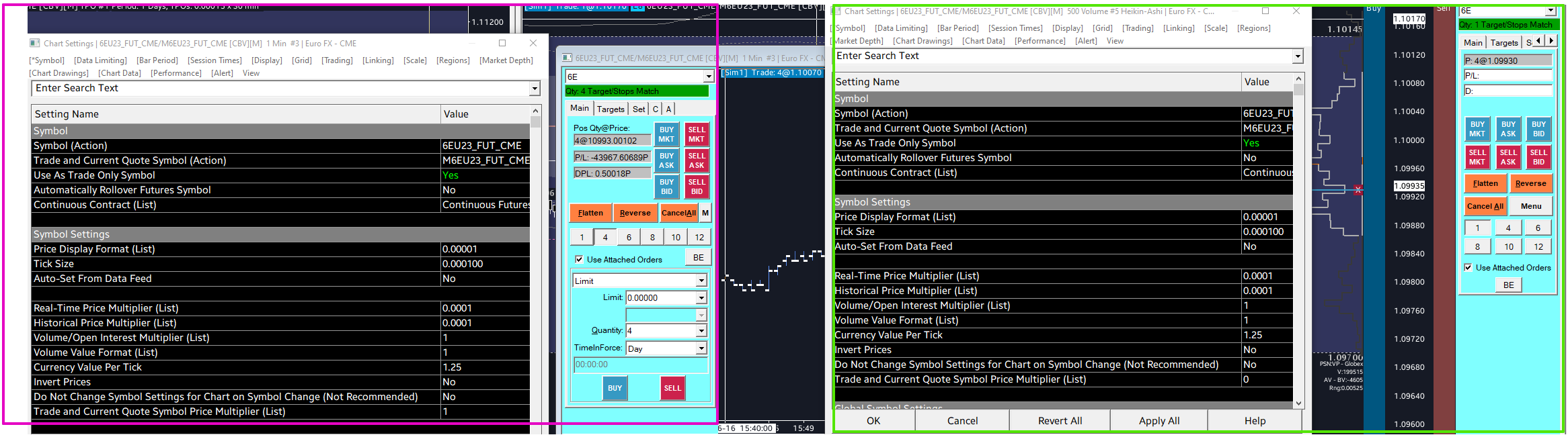 Thank you, it makes perfect sense that there would be some issues using 6E/M6E on the same chart, as the 6E tick size is half of what the M6E tick size is. Tested and works as expected, thanks for the link! |
