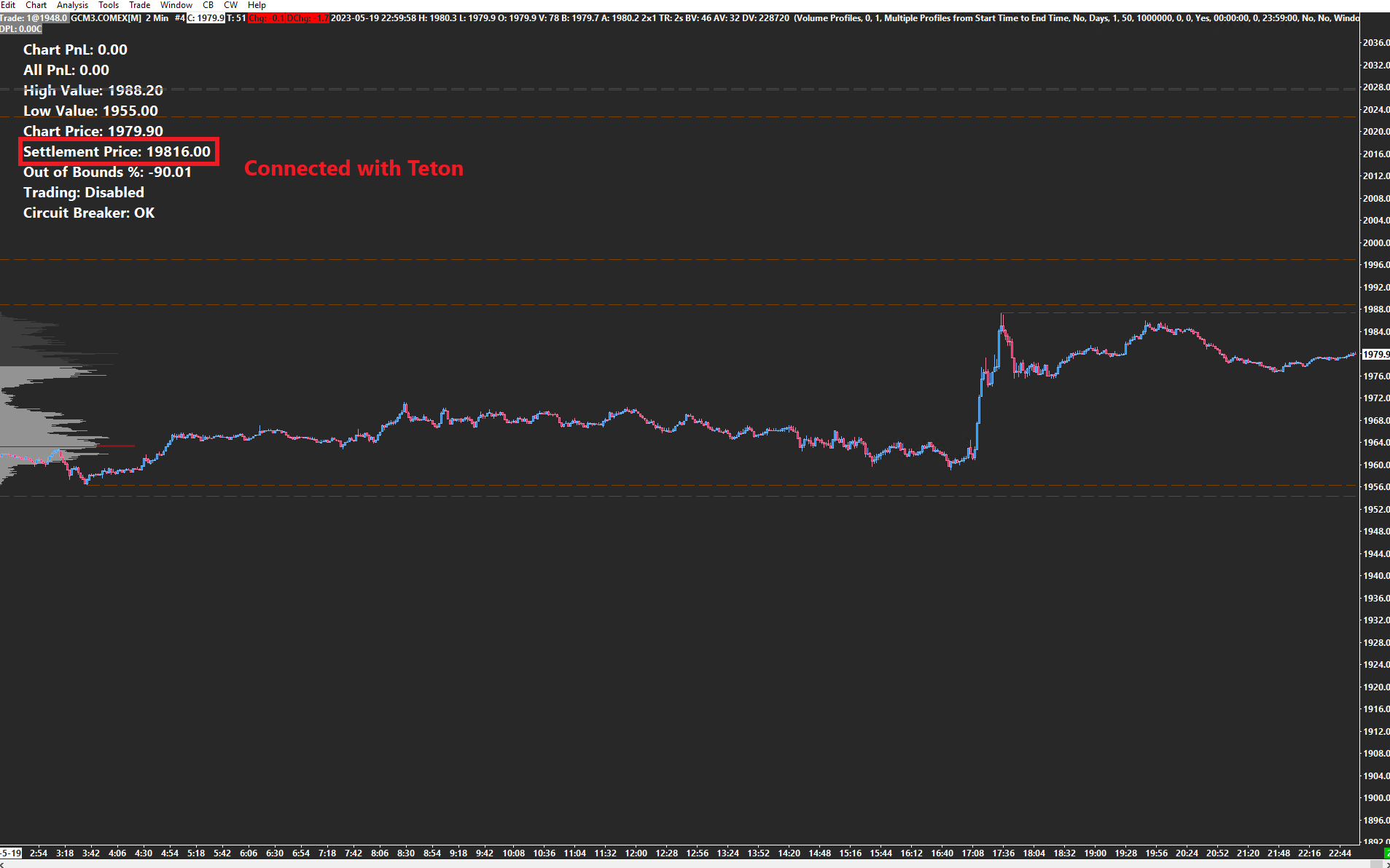 Dear Sierrachart Engineers My code to get the Settlement Price is as follow float SettlementPrice = static_cast<float>(sc.GetSymbolDataValue(SYMBOL_DATA_SETTLEMENT_PRICE, 0, 0, 0)); It works perfectly when i am connected to the Evaluator Trading Account which i use for Forward Testing, but when i am connected to Teton the Decimal Point seems to be incorrect, i use the latest release of sierrachart I have attached 2 Screenshots where you hopefully can see my Problem, had to Upload it via Add/Edit Attached Files because my Systems running on an External Server. |