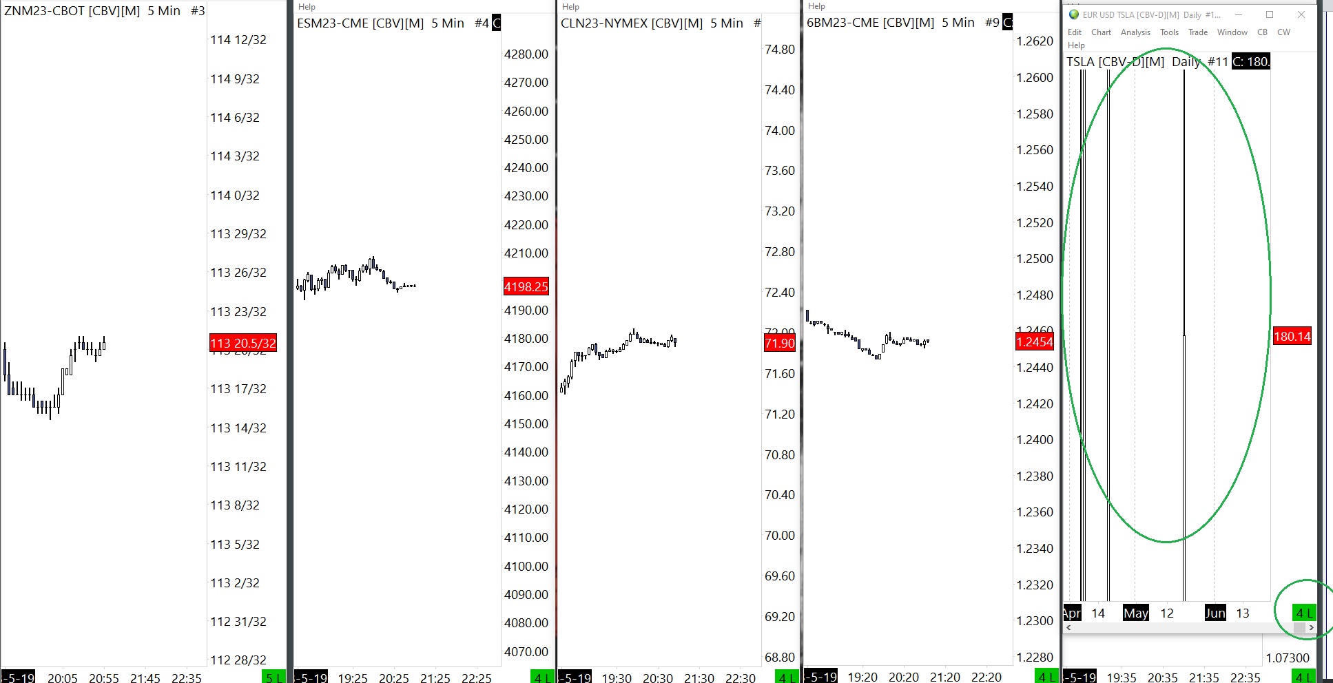 1. This looks like a scaling issue. Make sure the scales are set to "Automatic" and then reset the scales. Refer to the following links: Chart Scale and Scale Adjusting: Opening the Scale Settings Window for the Main Price Graph Chart Scale and Scale Adjusting: Automatic (Scale Range) Chart Scale and Scale Adjusting: Resetting the Scale 2. If your charts are updating, then your Time and Sales should be updating. The main thing to check is whether you have any filtering set and if so, remove it. Refer to the following: Time and Sales Window: Input Filtering >> Volume >= | Volume <= For the most reliable, advanced, and zero cost futures order routing, use the Teton service: Sierra Chart Teton Futures Order Routing |