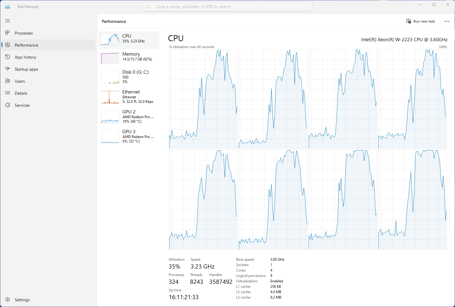 SC Support, I am confused. If your software is already multithreaded how does running multiple instances help performance? Your documentation encourages us to run multiple instances of SC to improve performance, but it also states that SC is multi-threaded, a fact which my own investigations have confirmed. Please see task manager screen shot attached showing 8 logical processors under heavy load running SC. Here's what your documentation says: "Multiple instances of Sierra_Chart can be run to distribute processing load." and: "A CPU core can run one or two program threads at the same time. It will run two threads if it supports hyperthreading. A thread is a unit of execution within Sierra_Chart. When Intraday data downloading is being done, this is performed on a separate thread. When Daily or Intraday chart data is being loaded in a chart, it runs on a separate thread. For some of the supported Data and Trading services, market data feed processing is performed on a separate thread and is an ongoing task when connected to the data feed." Source for both quotes: Source: Performance |