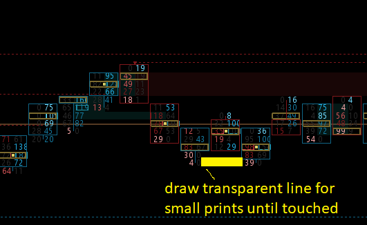 Is there a way to draw extension lines with transparent range until price touches (similar to Volume at Price Threshold study) at the top or bottom of a bar for bid or ask vol < x ? This would apply only to the top or bottom price point of a bar.