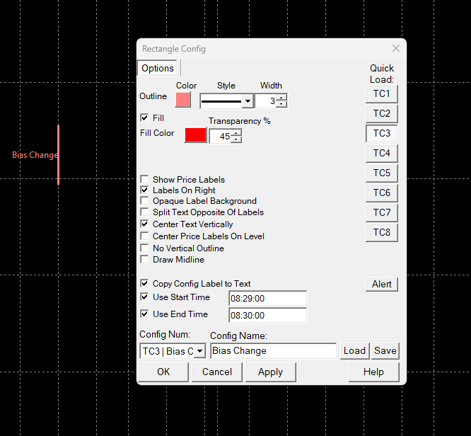 I have Sierra V 2509 on a Windows 11 PC and I'm creating a new control bar 2 however one of the tool configs is not working properly. Rectangle config 3 does not extend to the end time as configured. I've attached a pic of the chart and the config window. The rectangle only shows the start time. All the other configurations I've set up are working correctly however there may be others. Ron |