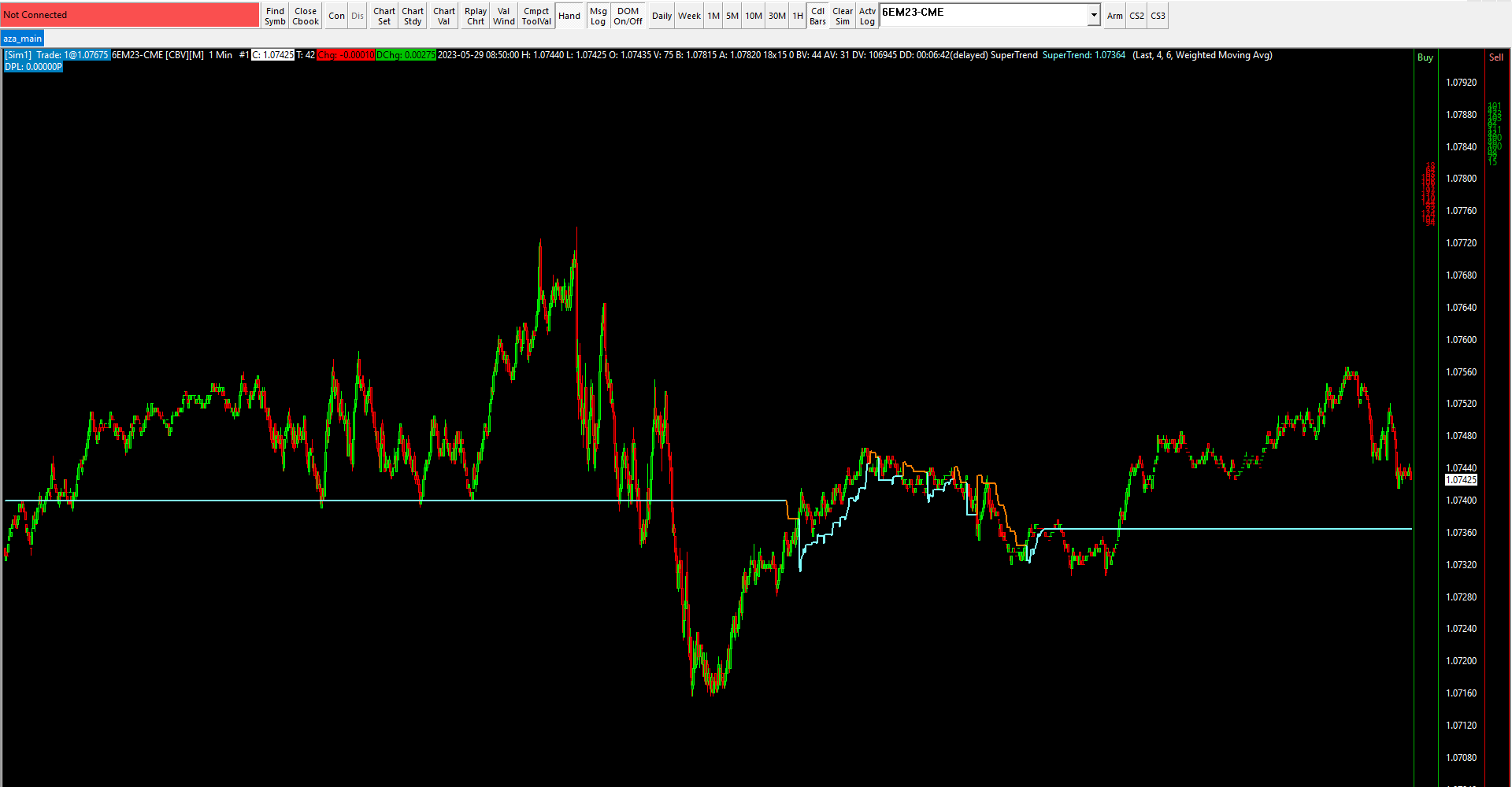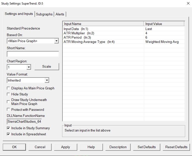 Hi, I am trying to use the Super trend study. But there is some problem with the calculations as it is becoming flat after certain candles on chart. Please refer to the image for context. This is only happening on currency charts so there maybe a problem with decimals. I am attaching the settings I am using for the study as well. How do I get over this? Thanks in advance. https://www.sierrachart.com/image.php?Image=1686567584152.png |