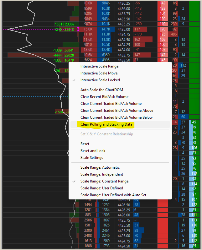 sc.ClearRecentBidAskVolume(); Can you please add the ability to clear/reset DOM pulling and stacking data via ACSIL also? This would complete the one missing piece. |