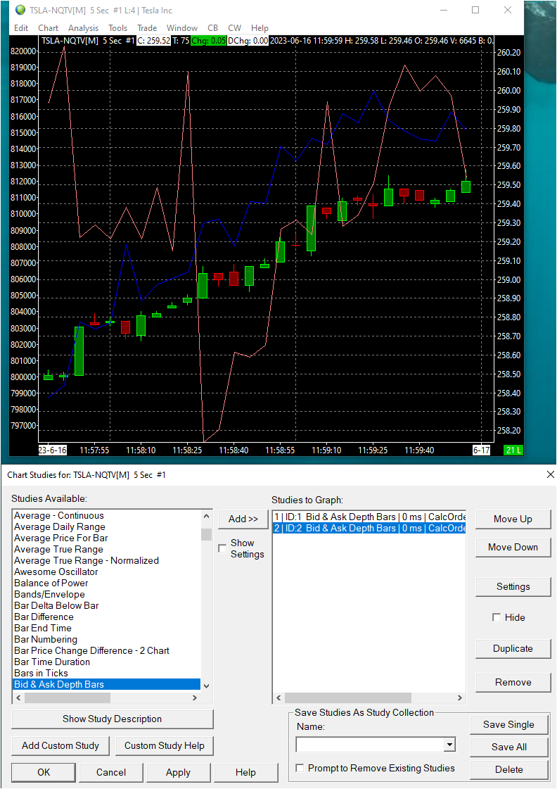 i took ID1 :"bid&ask depth bars" study and i display the sum bid side (as line) and ID2 :"bid&ask depth bars" study and i display the sum ask side (as line) ... i made ID1 in the scale tab "use in left side scale" and ID2 in the scale tab "use in left side scale" ... only ID1 responded to left scale. how can i make also ID2 responded to left scale (i need that ID1 and ID2 will be connect to left scale) regards |