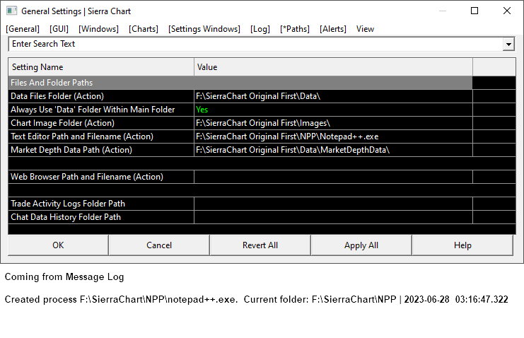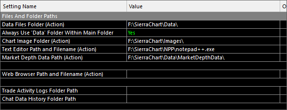 Okay, I understand. The SierraChartTransActMA subfolder does not exist. I also don't know where this subfolder comes from. How can I make this address be accepted? F:\SierraChart\NPP\notepad++.exe Many thanks |