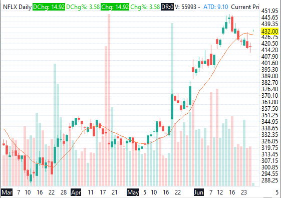 Daily historical chart displaying void in lieu of today's bar