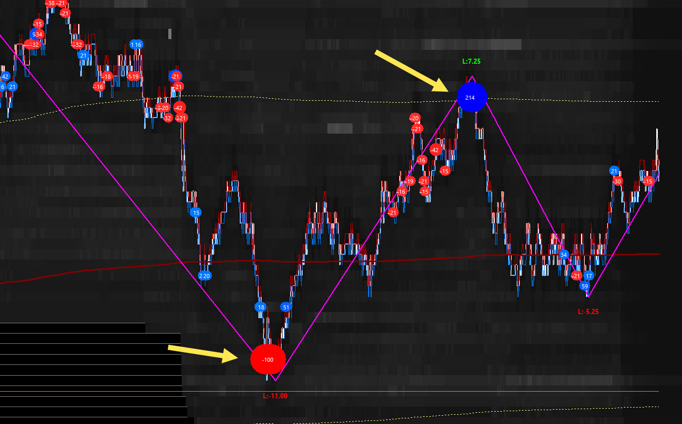 On the very useful LARGE VOLUME TRADE INDICATOR there is a thing to correct that I think will require little effrort from you and could imporove the indicator a lot: As you can see from the image attached the automatic sizing of the Circles is made comparing the blue ones with the blue ones (ask) and the red ones with the red ones (bid) that are in a specific moment showed on a chart. This gives a non immediate correct vision of what is really happening.... you see the -100 circle (bid trades) and the +214 (ask trades) with the same cirle size that is not the case to have a clear immediate vision, so why not simply adjust the sizes comparing the ABSOLUTE VALUES so it takes into account bid and ask ? so in the above example the ask one (+214) will become the double in size comparing to the bid one (-100). I suppose it should be not a big change for you.. If it can be adjusted on the next updates it could be a really good improvement tks regards |