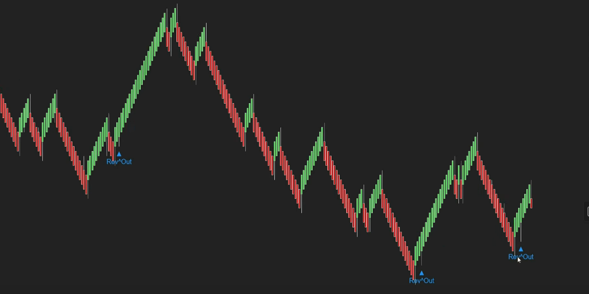 This is the basic formula. Tweak as needed: =OR( AND(ID0.SG23[-1]>ID0.SG22[-1],ID0.SG23>ID0.SG22, MAX(H,ID0.SG23)-MIN(L,ID0.SG22)>TICKSIZE*30), AND(ID0.SG23[-1]<ID0.SG22[-1],ID0.SG23<ID0.SG22, MAX(H,ID0.SG22)-MIN(L,ID0.SG23)>TICKSIZE*30) ) This finds Renko bars with a range > 30 ticks, ignoring the reversal bar. Date Time Of Last Edit: 2023-07-06 00:28:17