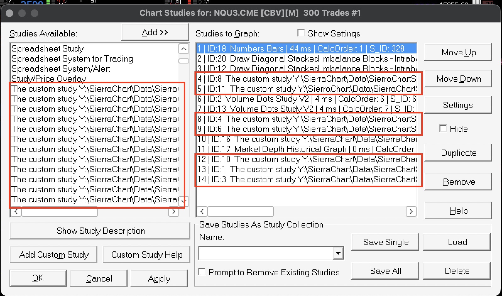 After updating today (06 july 2023) most SC studies are showing as Custom studies, listed as "The custom study/SierraChartDatalSierral...." and some are missing from my chart too. I attach a screenshot of my studies window. HELP asap please! Thx Date Time Of Last Edit: 2023-07-06 00:59:52